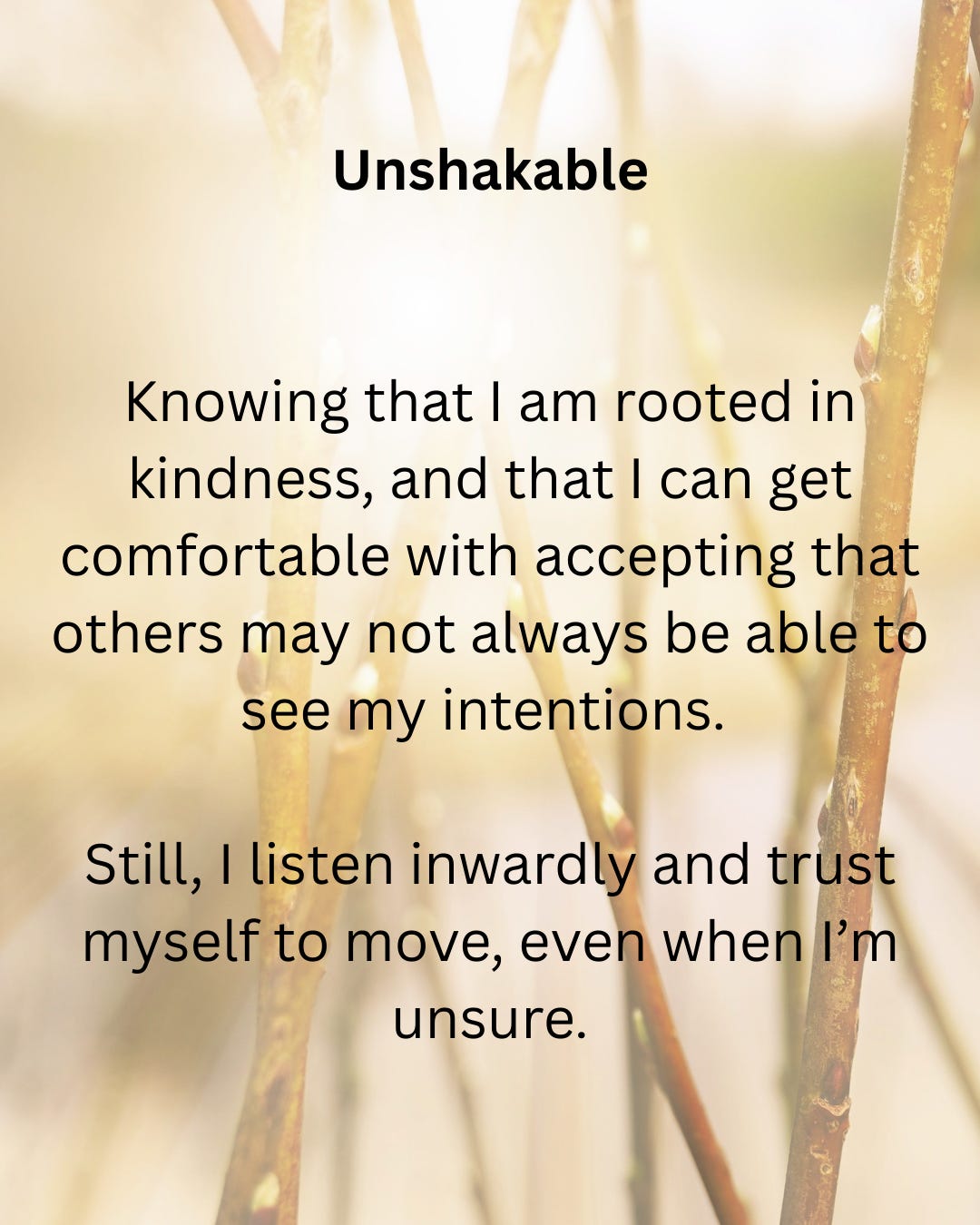 I go into the new year accepting that I’ll not always behave in ways that people like, and that at times I may disappoint others or inadvertently upset them. And whilst this is not my intention, and it causes me distress, I’m also taking with me the wisdom that it’s not my responsibility to try to make it better for other people. When I have acted with grace, or set a boundary that others don’t like, my responsibility is first and foremost, to myself. I don’t have to be a dick about it. I can bend and receive their response like willow, but I’ll not be uprooted, and put their needs before my own in the way I too often have in the past. Uncomfortable though it can be. Our needs matter too. I’m learning to let my actions be guided by what feels rooted within me, rather than what I anticipate others might want from me.