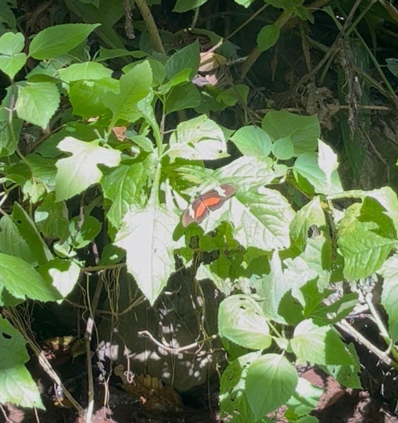 I’ve been listening this week to ‘I haven’t been entirely honest with you’, Miranda Hart’s book about her experience of chronic illness and recovery. I hadn’t realised how closely her experiences would echo my own and I’ve found myself relearning familiar lessons, but from a different perspective and I found myself smiling at the way she presents them. Yesterday I was already following her advice for a slower pace in my pootling beside a river, pausing to enjoy the butterflies (which were inevitably camera shy).